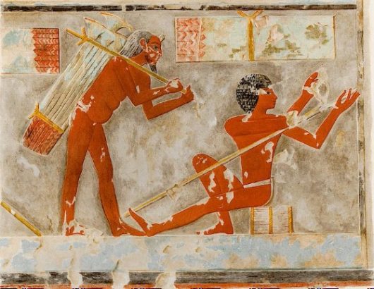 Fig. 18 Esclavos de Mitanni ← Anterior Siguiente → Figura 18. Esclavo de Mitanni trabajando con papiros. Tumba de Puiemra TT 39 (N. de G. Davies, 1922, lám. XV)